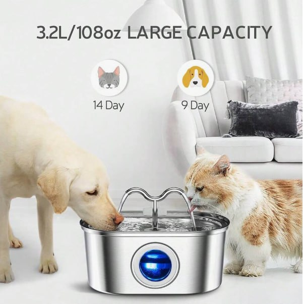 Cat Water Feeder Double Head Automatic Cat Drinking Fountain Stainless Steel Pet Water Fountain