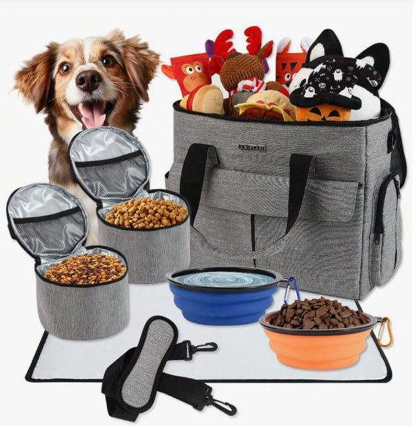 5 PCS Dog Supplies Travel Bag, Dog Food Backpack, Dog Snack Backpack