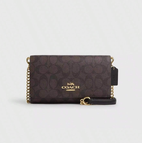 COACH Women's Small PVC & Leather One Shoulder Crossbody Bag, Dark Brown, CP033 IMAA8