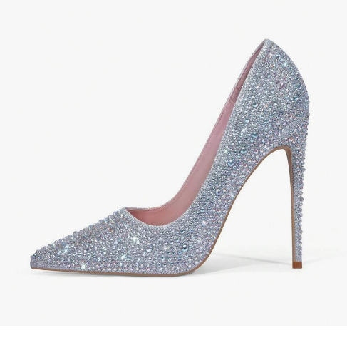 Women's Fashionable High-heeled Pumps With Rhinestone Decor, 12cm Heel Height