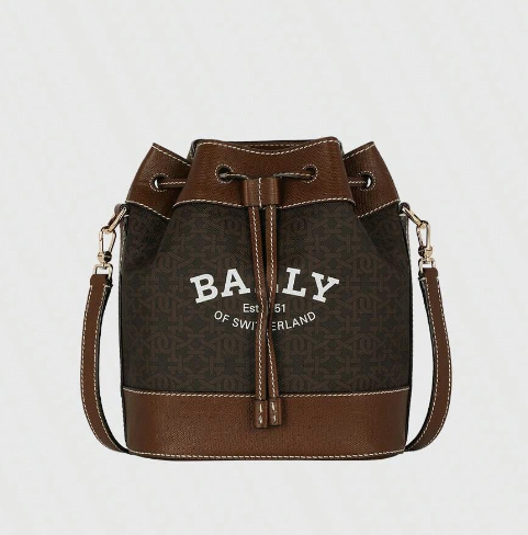 Bally Bally Women's Cleoh Series Monogram Shoulder Crossbody Bucket Bag Brown 6239007