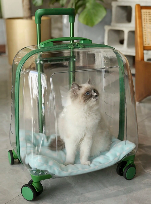 1pc Pet Carrier PC Portable Transparent Space Capsule Luggage With Pull Rod For Cats And Dogs