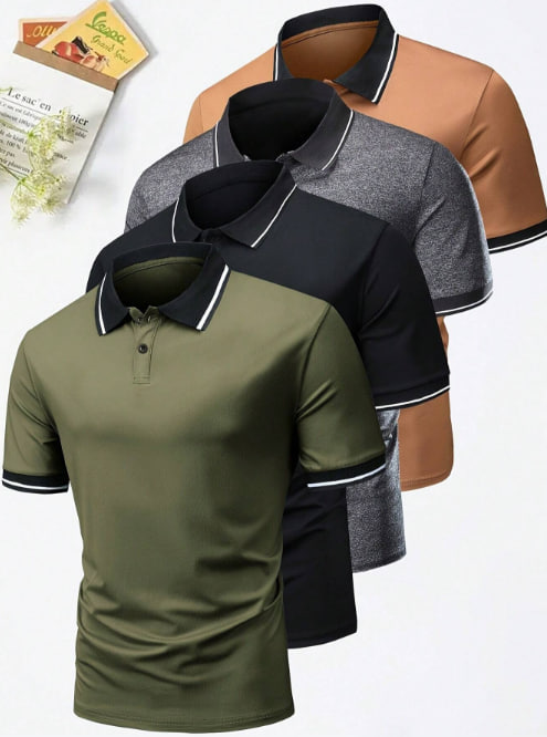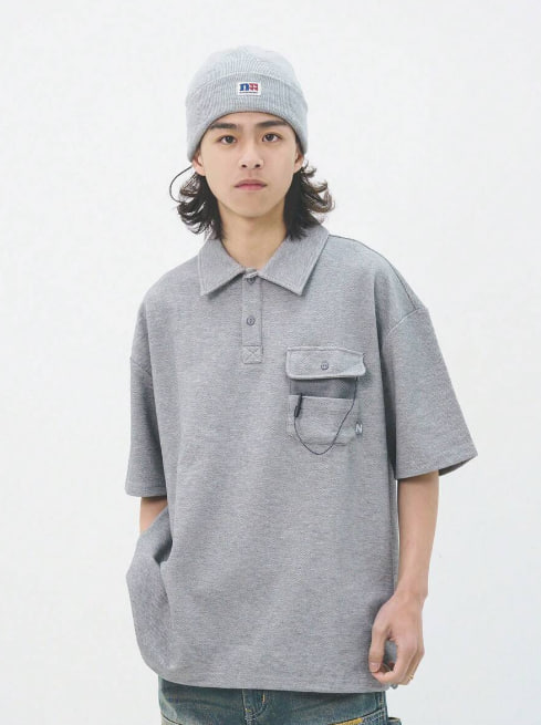 Vintage Style Pocketed Short Sleeve Polo Shirt