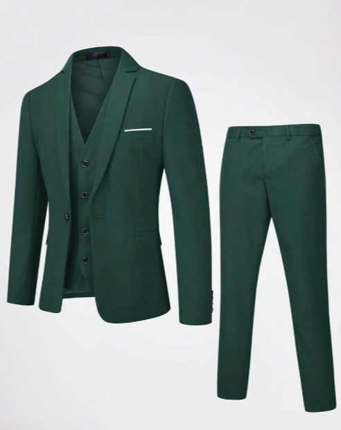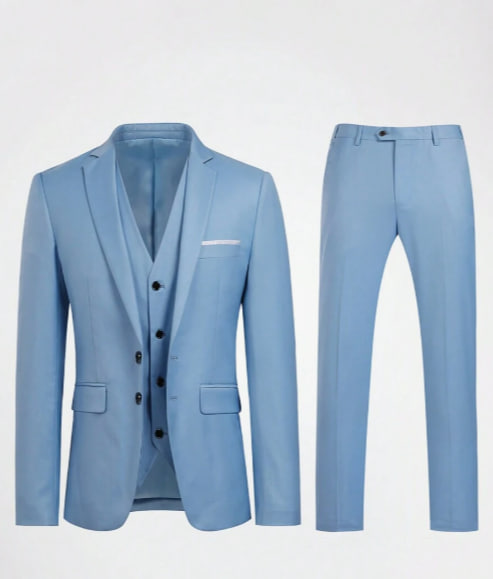 CLOUDSTYLE Men Plus Single Breasted Blazer & Vest & Pants Suit Set