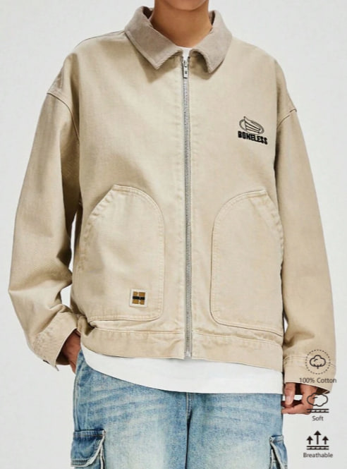 BONELESS Embroidered Logo Patchwork Denim Jacket