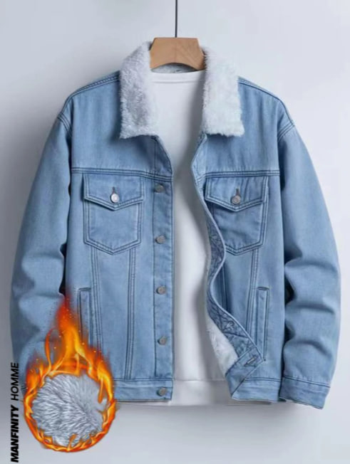 Manfinity Homme Men Shearling Lined Button Front Loose Denim Jacket Without Tee