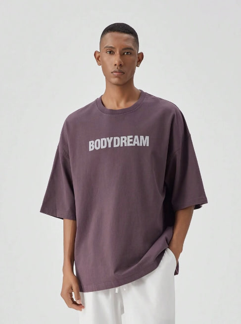BODYDREAM Men Summer New Heavyweight Plush Printed Short Sleeve T-Shirt