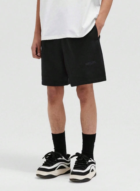 BONELESS Basic Logo Printed Casual Drawstring Sports Shorts,