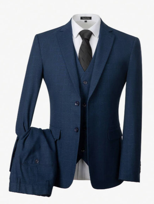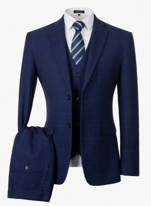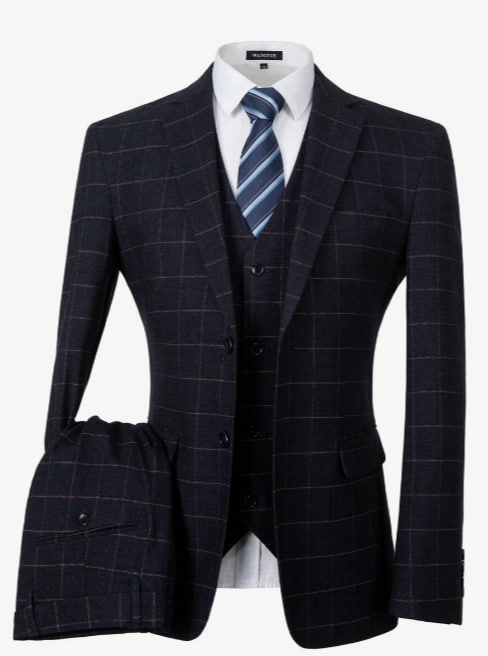 Men's Plaid Suit Three Piece Set With Suit Vest And Pants