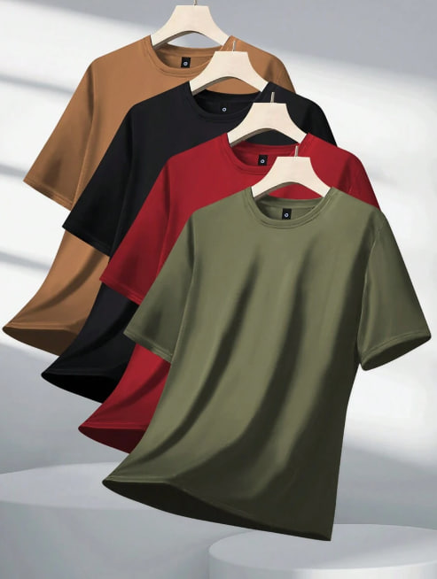 Fit Short Sleeve Solid Color Basic T-Shirt