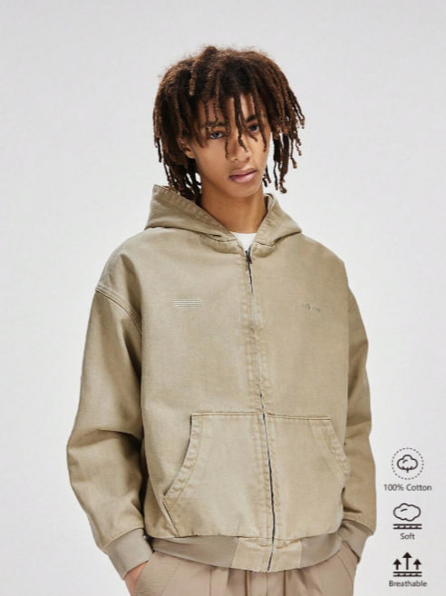 BONELESS Water-Washed Distressed Denim Hooded Jacket