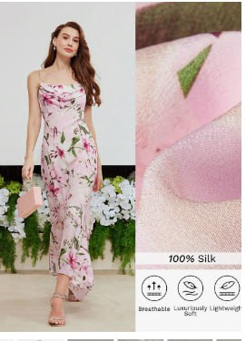 MOTF PREMIUM SILK FLORAL PRINT RUCHED HANKY HEM SLIP DRESS