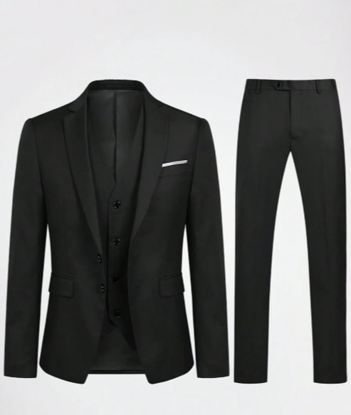 CLOUDSTYLE Men Plus Single Breasted Blazer & Vest & Pants Suit Set