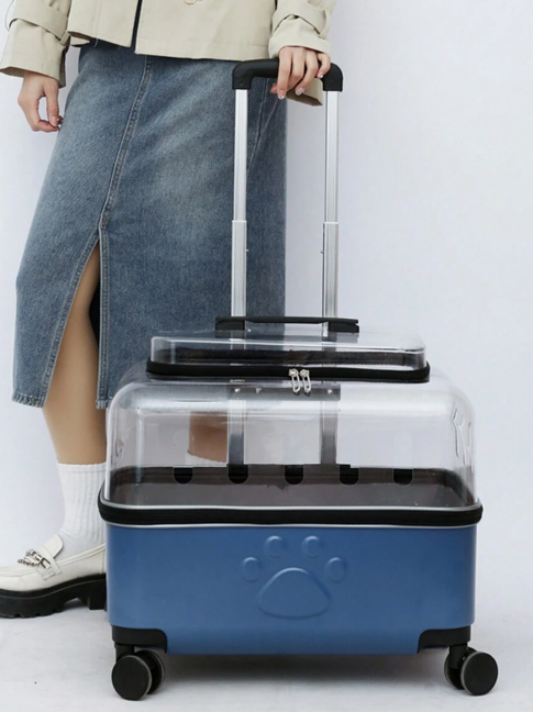1pc Pet Carrier PC Portable Transparent Space Capsule Luggage With Pull Rod For Cats And Dogs