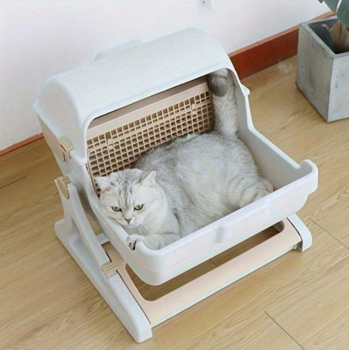 1pc,"Leak-Resistant" Luxury Semi-Enclosed Cat Litter Box - Easy Clean